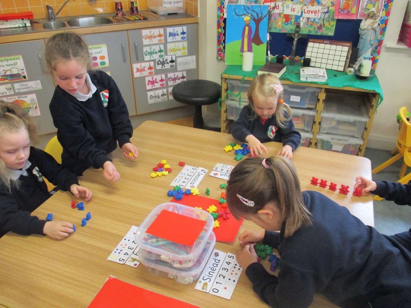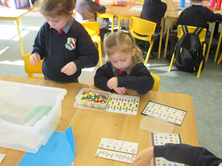 Junior Infants completed lots of activities based on matching, sorting and classifying. Senior Infants revised sorting and classifying, aswell as revising numbers 0-5.