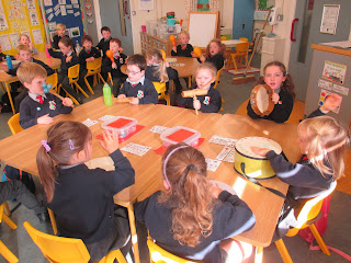 We have been learning lots of songs and poems this month. Our favourite song that we learned was "When I was one....". We practised singing the song and finding the beat of it. When we were confident clapping out the beat of the song, we added instruments. It was great fun!
