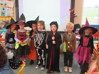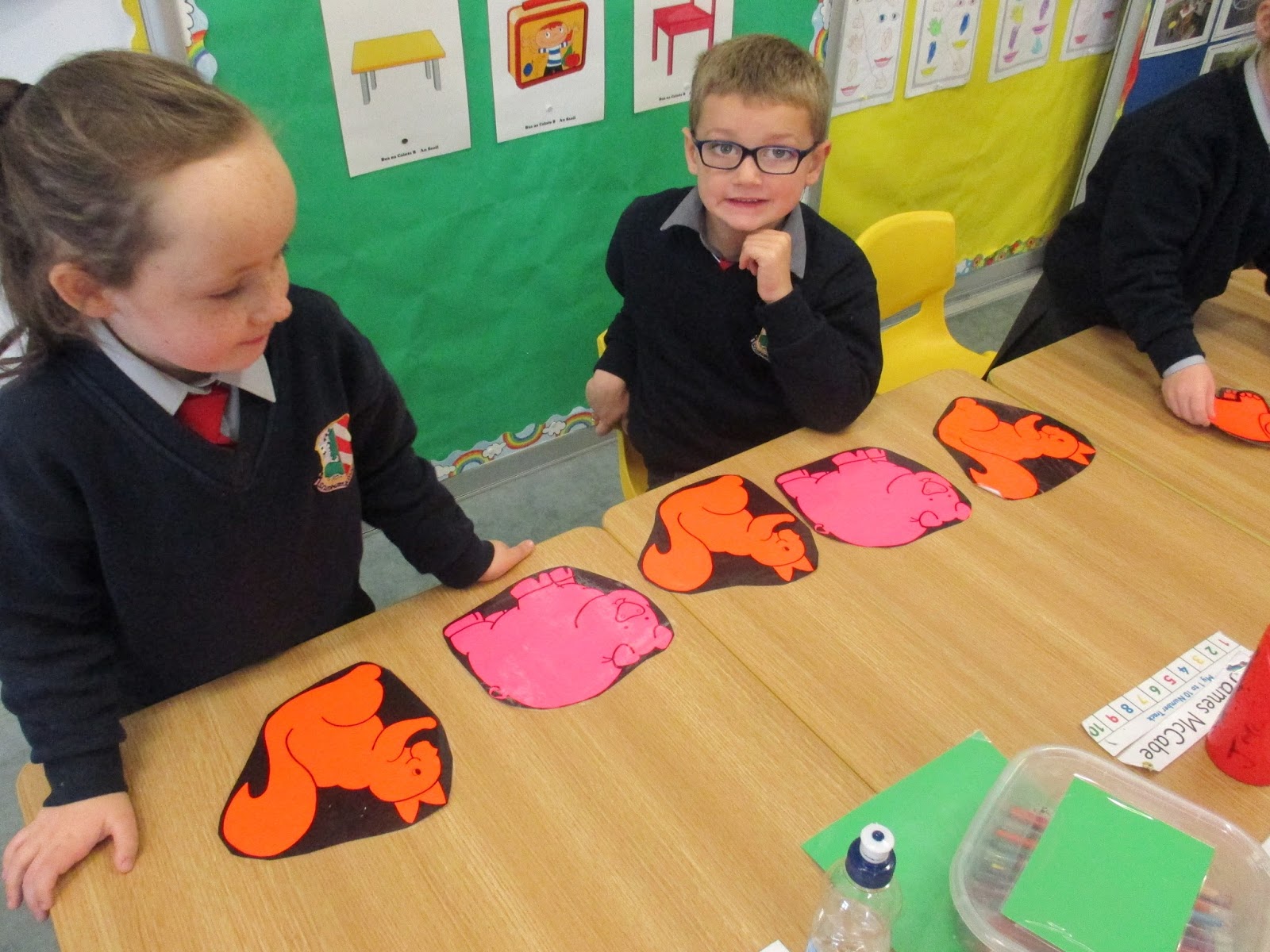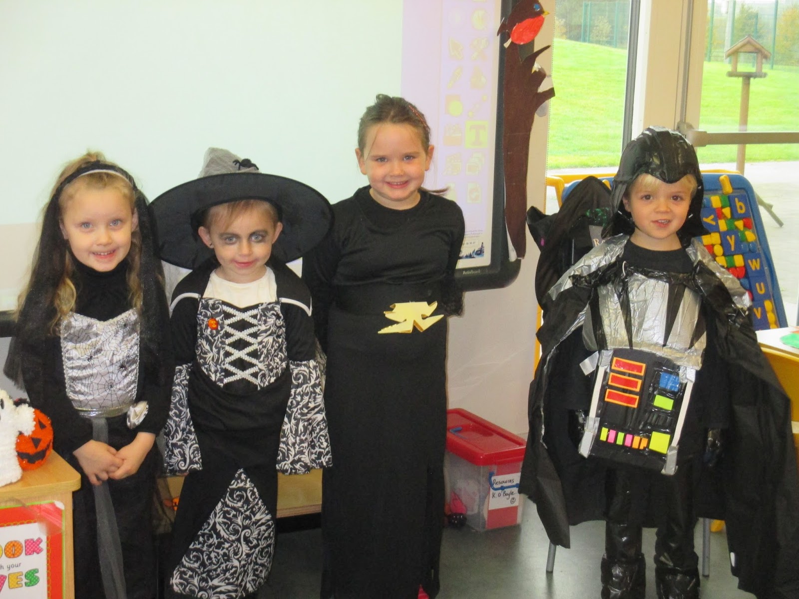 We had a very busy month in October, learning lots about Autumn and Halloween. We participated in lots of fun activities during 'Maths Week' and 'Friendship'. We had a special visitor come to talk to us about road safety and we also participated in the 'World's Largest Lesson' about Global Development. We learned all about Halloween, completing fun activities and games. We even dressed up for Mufti day at the end of the month. It was great fun!