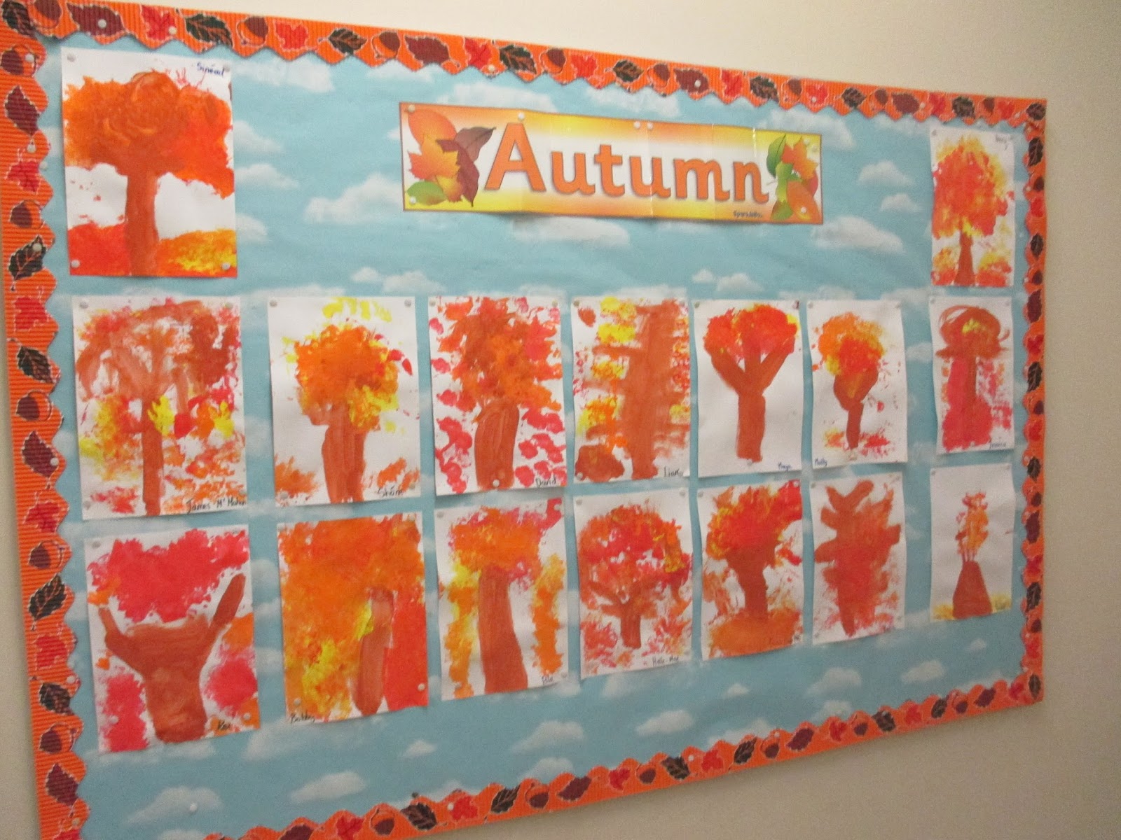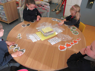 For the first two weeks, we learned all about Autumn. For SESE we explored the signs of Autumn in Geography, learned about Autumn Colours in Science and sequenced the story of We're going on a Bear Hunt as part of History. We made Autumn trees as part of Art activities by painting and printing using scrunched up newspaper and cotton buds.