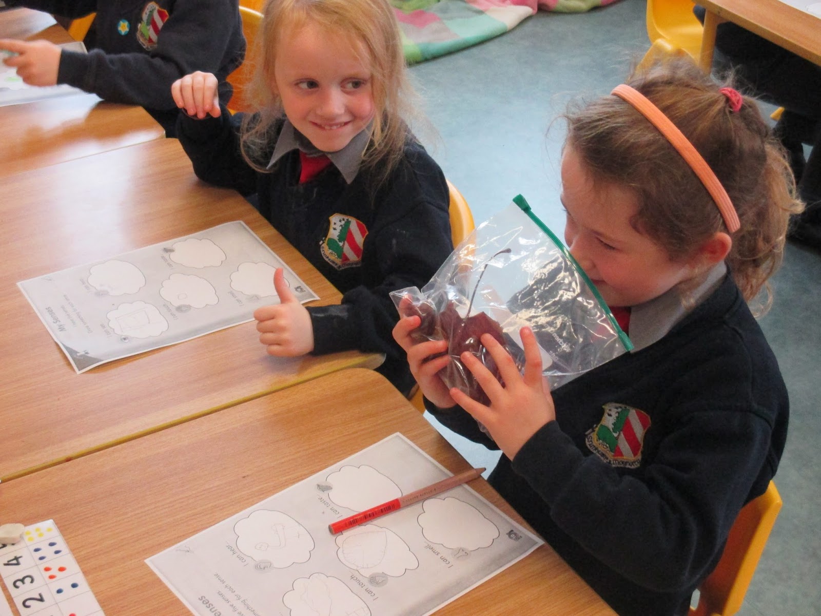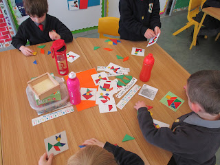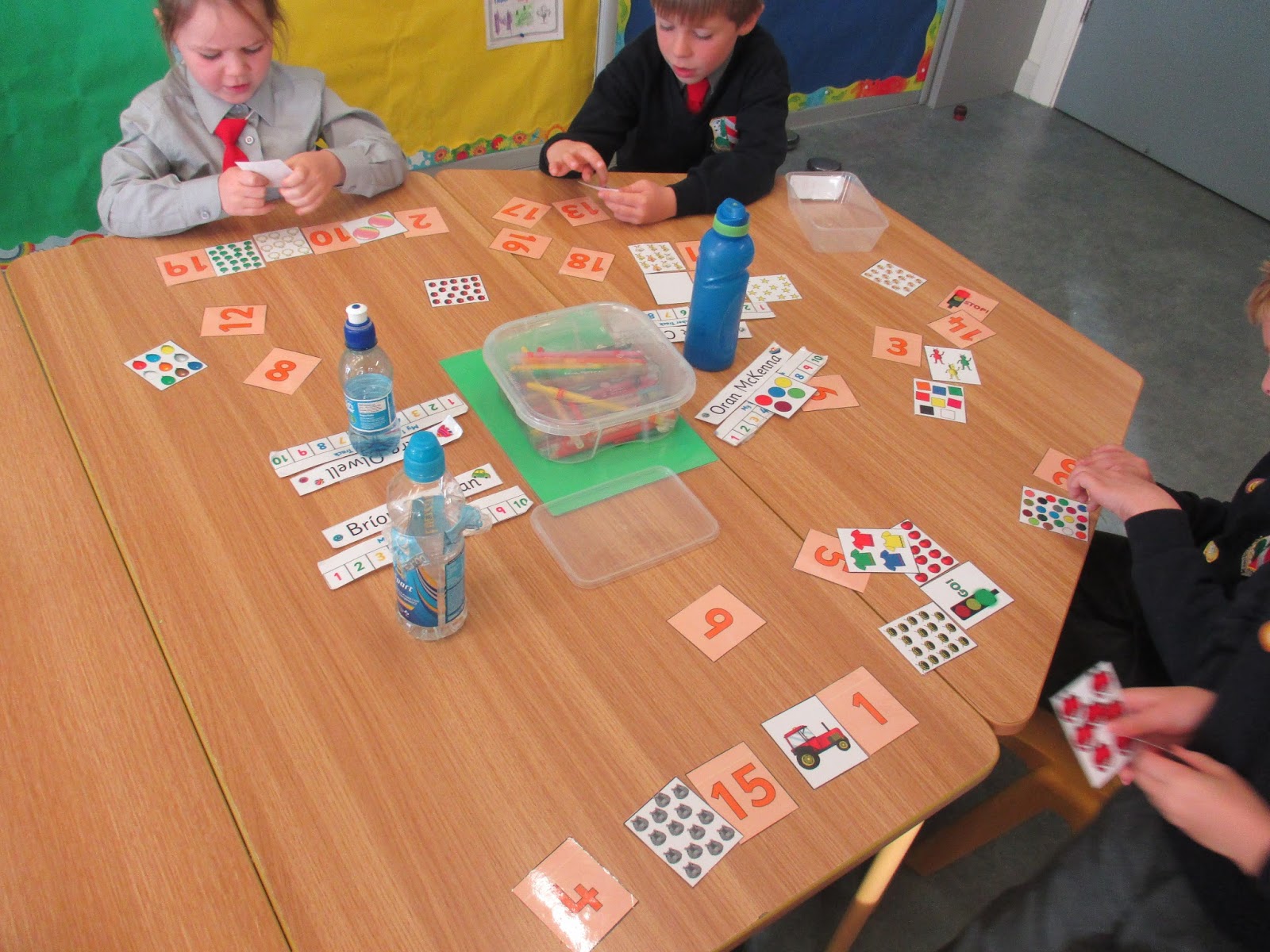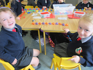 As part of Maths Week, we completed lots of fun maths games and activities. As we were learning about Patterns, we did lots of hands on activities makign patterns using different resources such as cubes, counters and pictures. We also completed maths stations with different activities and games based on numbers and shapes.