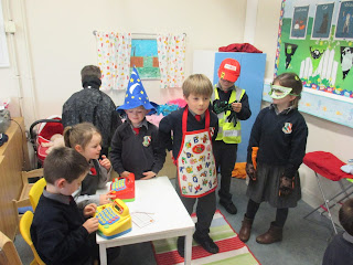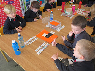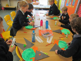 During the second fortnight, we spent lots of time learning about Halloween and completing activities based on Halloween. Our Big Book for this fortnight was 'Room on The Broom'. We completed lots of tasks based on this. During S.E.S.E, we learned all about Day and Night in Geography, Shadows in Science and we sequenced the story of Room on The Broom as part of our History. We learned lots of Halloween songs and poems as Gaeilge also. During our finger gym activitiy groups, we completed some Halloween activities too. We really enjoyed it!