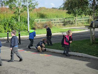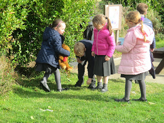 Our big book for this fortnight was 'We're going on a Bear Hunt'. We completed lots of activities in as part of our English, Drama, Geography and History lessons based on this story and had so much fun! We made our own Journey maps to plan our very own Bear Hunt. When we were ready to go, we put on our coats and went outside on our very own Bear Hunt. When we had finished, we looked around for signs of Autumn and collected them in our groups.