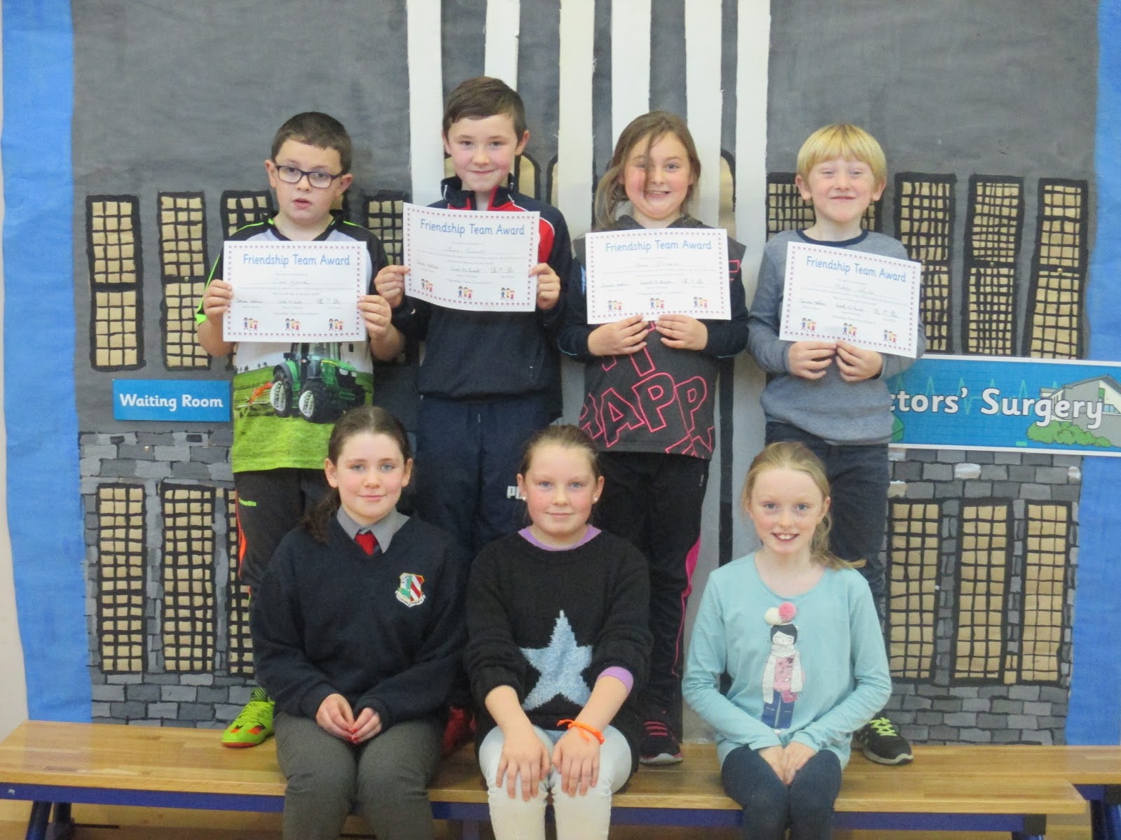 Friendship week was a very enjoyable week when all made an extra special effort to be kind to our friends. We talked all about how to be good, kind friends. In assembly, we all gathered with the rest of the school to sing the song 'Count on Me' and we completed lessons based on Friendship. We talked about the 'Keys to Kindness' and drew pictures of ways in which we would try and be kind to our friends. One of our favourite things about Friendship Week was eating our lunch with our Lunch Buddies. Everyday, boys and girls from Fifth Class came up to our class to eat lunch with us.