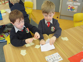 During the second fortnight, we learned all about Winter. We talked about the signs of winter and what clothes we need to wear during winter times. In Irish, we learnd lots of songs, poems and words based on 'An Aimsir'. Our big book for this fortnight was 'The Gruffalo's Child'. In our maths, Junior Infnats learned all about the number 2 while senior infants learned all about the number 7. We began practising our songs for the Christmas Carol service, singing 'Winter Wonderland' as one of our music songs. In SPHE, we talked about ways in which we are all special and unique, just like snowflakes. Our Aistear was based all around the topic of Winter.