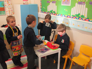 We took part in role - play in the home corner as part of socio-dramatic play.